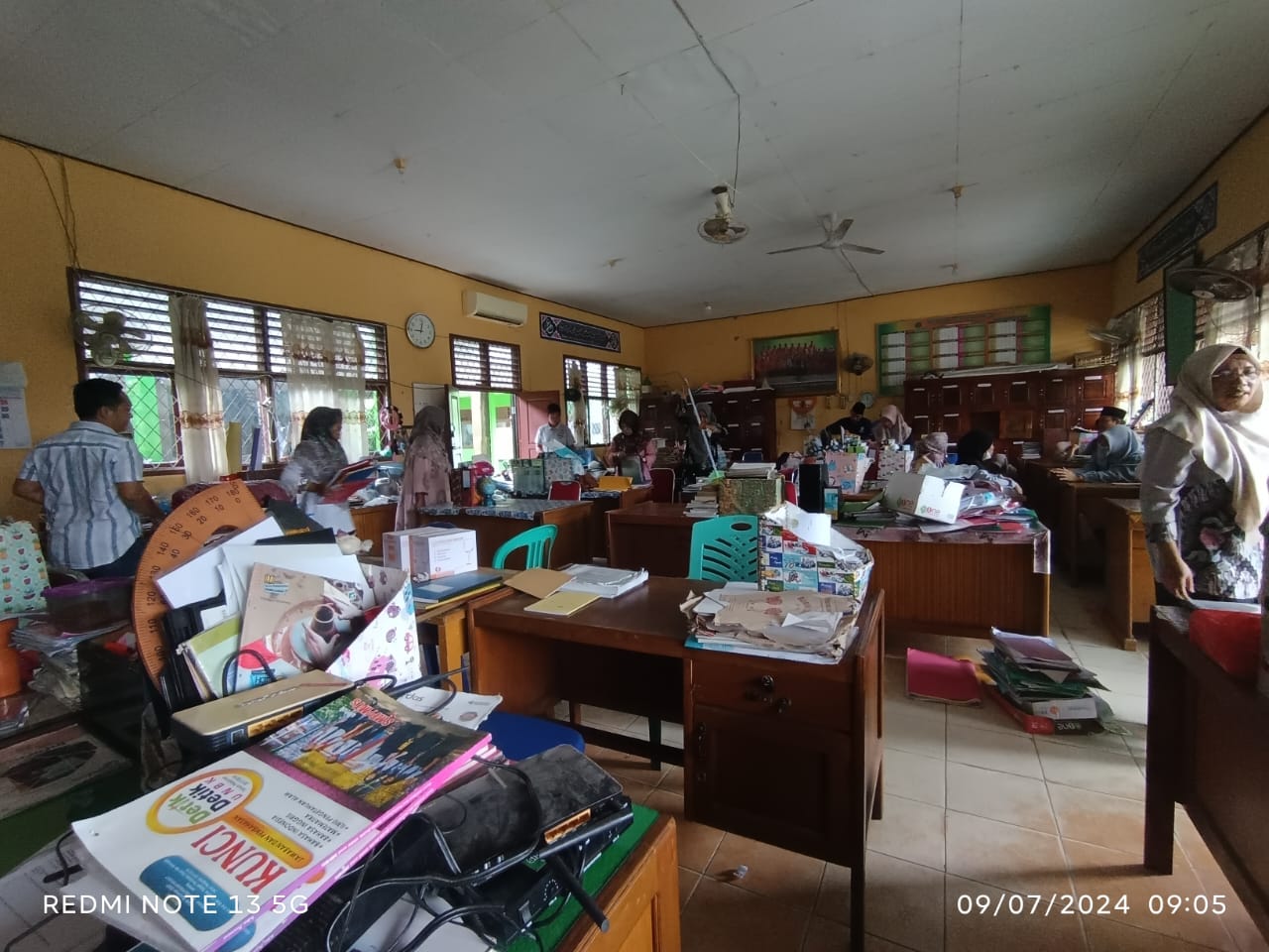 Wakil Kepala Bidang Sarana, Ibu Alawiya, setelah berkoordinasi dengan Kepala masalah gotong royong ini, kita sepakat untuk bersih-bersih dan merapikan beberapa ruangan seperti Ruang Guru, Ruang Tata Usaha, Ruang UKS, Ruang BK.