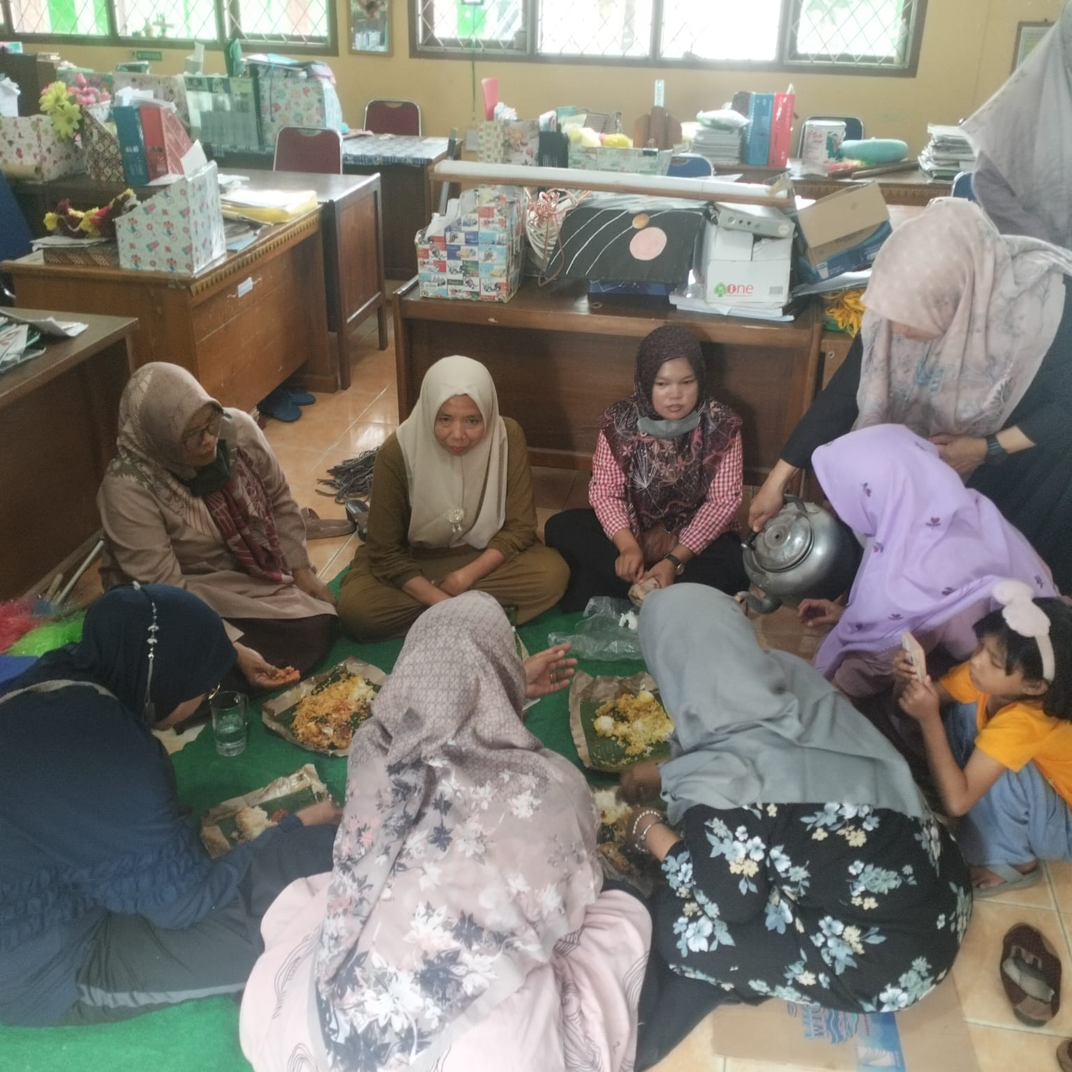 Kegiatan gotong royong ditutup dengan acara makan bersama Kepala, Guru dan Staf Madrasah sebagai bentuk silaturahmi antar warga madrasah. (Amsol)