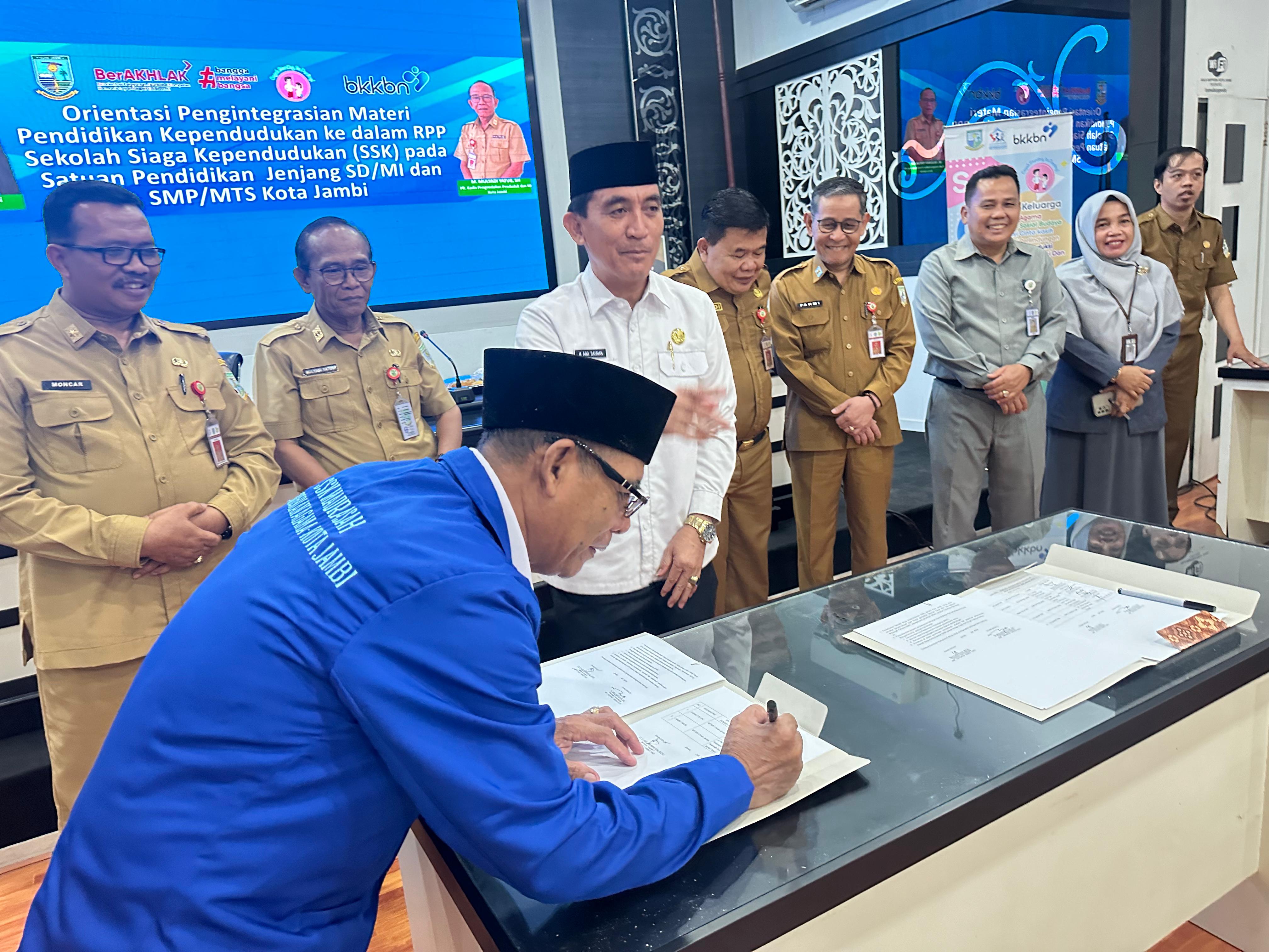 MTsN 1 Kota Jambi -- Hari ini Selasa (23/07/2024), Kepala Madrasah dan Guru MTsN 1 Kota Jambi mengikuti kegiatan Orientasi Sekolah Siaga Kependudukan yang diadakan di Aula Bappeda Kota Jambi. Sekolah Siaga Kependudukan (SSK) adalah sekolah yang mengintegrasikan pendidikan kependudukan, keluarga berencana dan pembangunan keluarga (PKKBPK) ke dalam beberapa mata pelajaran dan atau muatan lokal khusus kependudukan. Kegiatan ini diadakan oleh Dinas Pengendalian Penduduk dan Keluarga Berencana Kota Jambi.