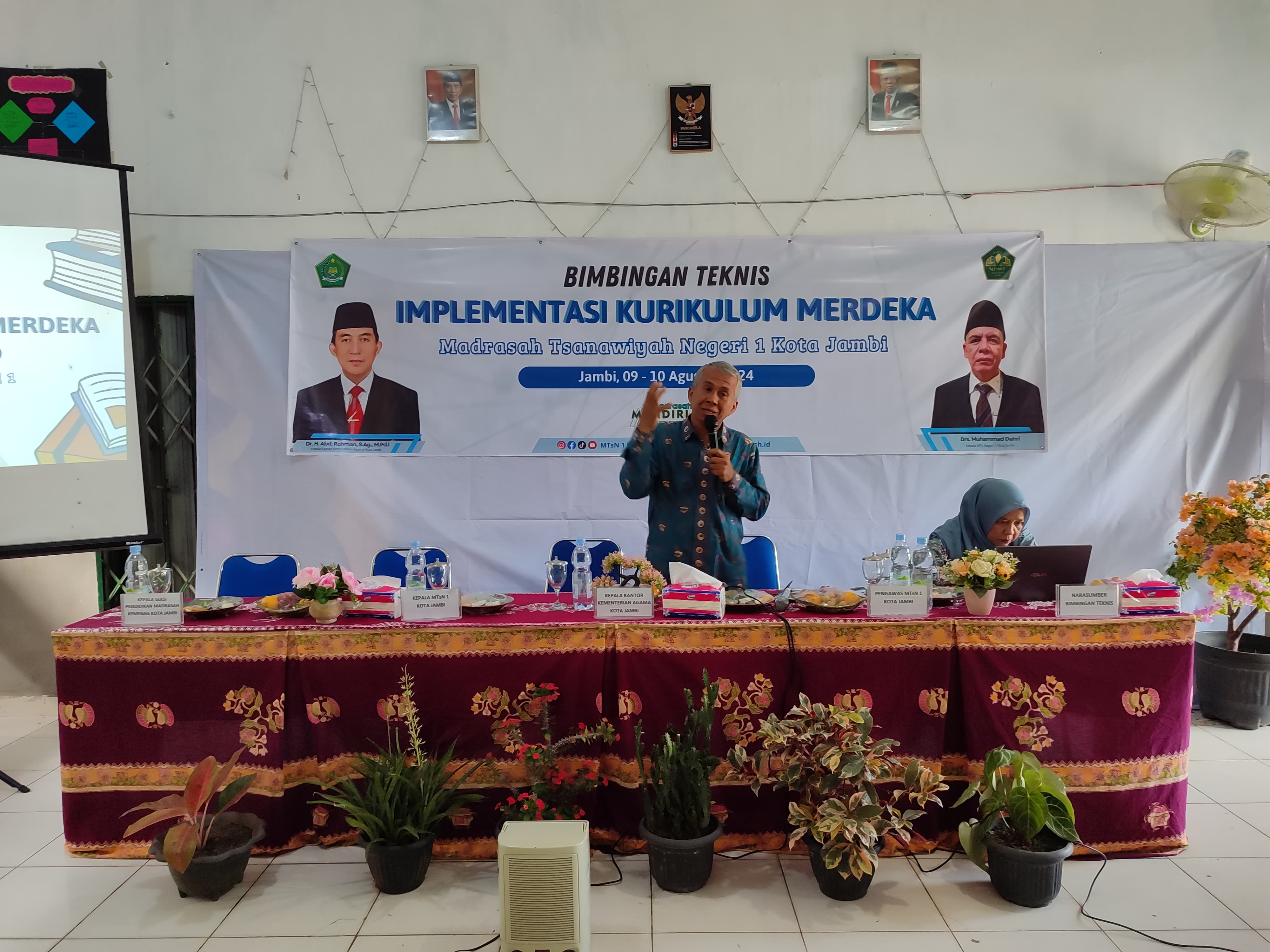 Kualitas pembelajaran selalu menjadi perhatian penting dalam pendidikan. Banyak cara yang bisa dilakukan untuk meningkatkan kualitas pembelajaran dan pendidikan salah satunya dengan melaksanakan Bimbingan Teknis. Kamis , 8 Agustus 2024 MTs Negeri 1 Kota Jambi menggelar Bimbingan Teknis Implementasi Kurikulum Merdeka (Bimtek IKM). Acara ini dilaksanakan di ruang serba guna MTsN 1 Kota Jambi selama dua hari, yakni Kamis-Jumat (8-9 Agustus 2024). Bimtek IKM diadakan teruntuk guru-guru hebat MTs N 1 kota Jambi yang berjumlah lebih kurang 40 guru.