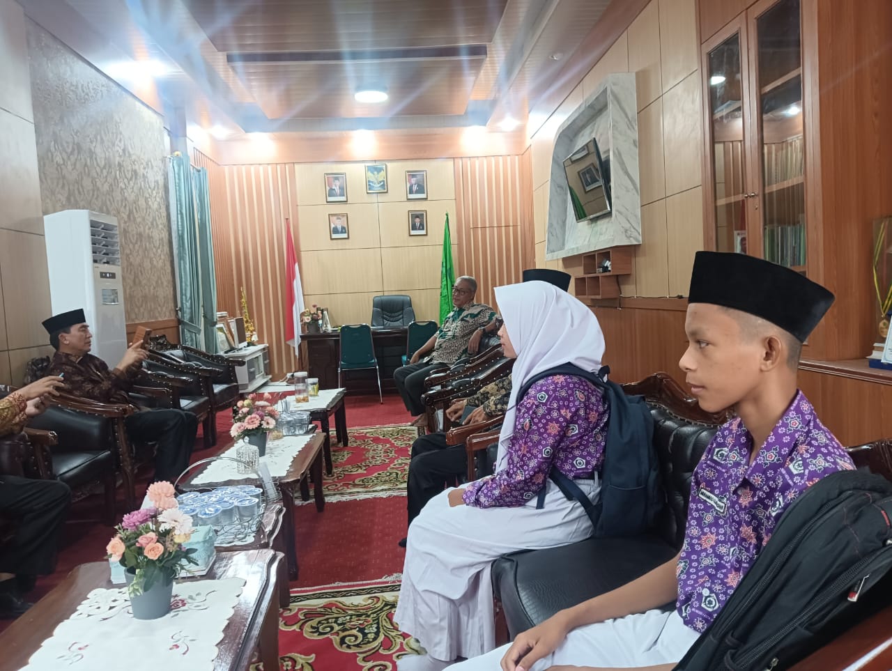 Kompetisi Sains Madrasah (KSM) tingkat nasional yang akan diadakan di Ternate, Maluku utara segera memasuki babak baru. Hari ini, M.Fajar Ramadhan dan Silvi Aura Rizki, dua peserta didik MTsN 1 Kota Jambi yang lolos melaju ke kancah nasional diundang oleh Kepala Kementerian Agama Kota Jambi ke Kantornya.