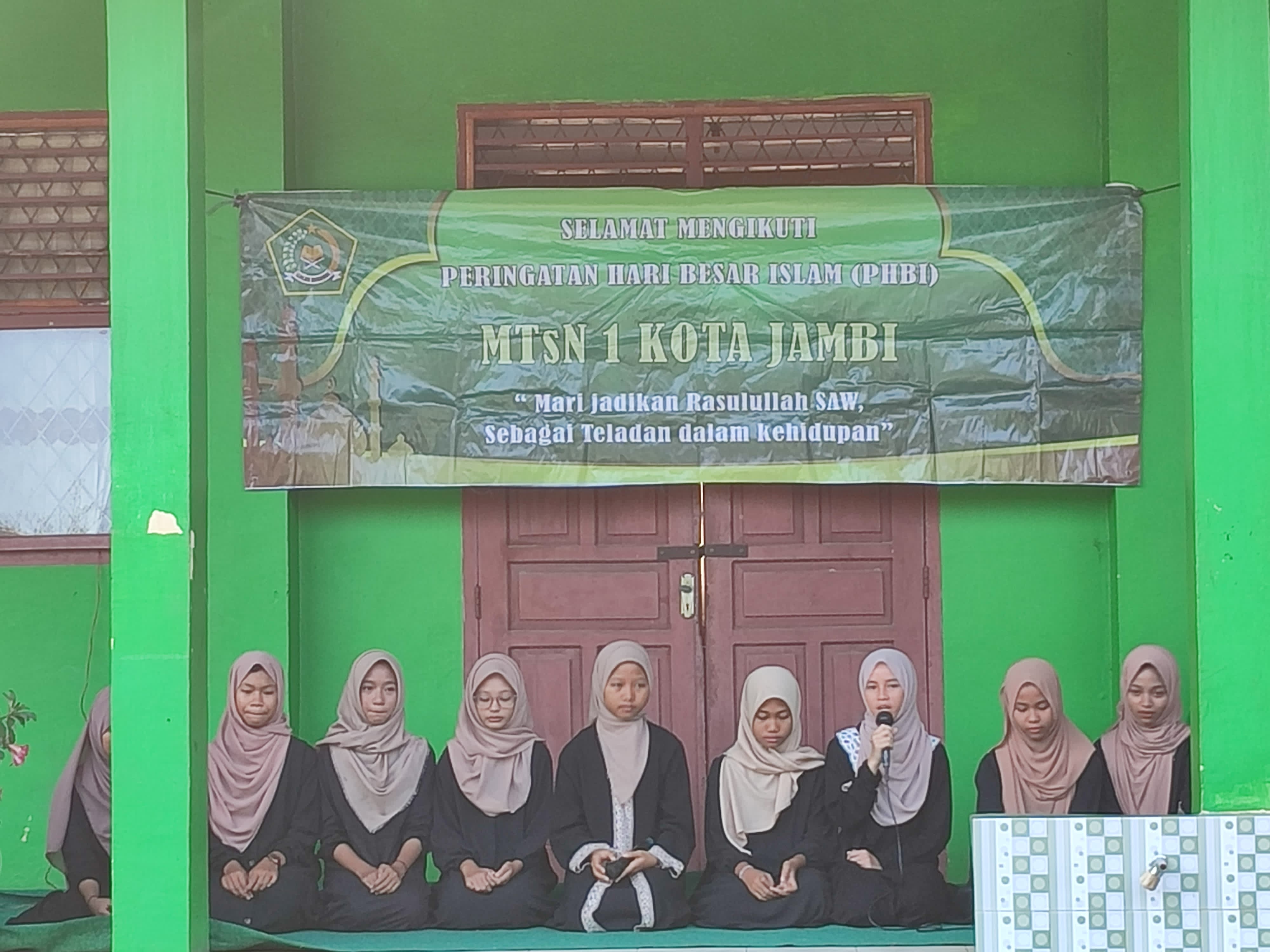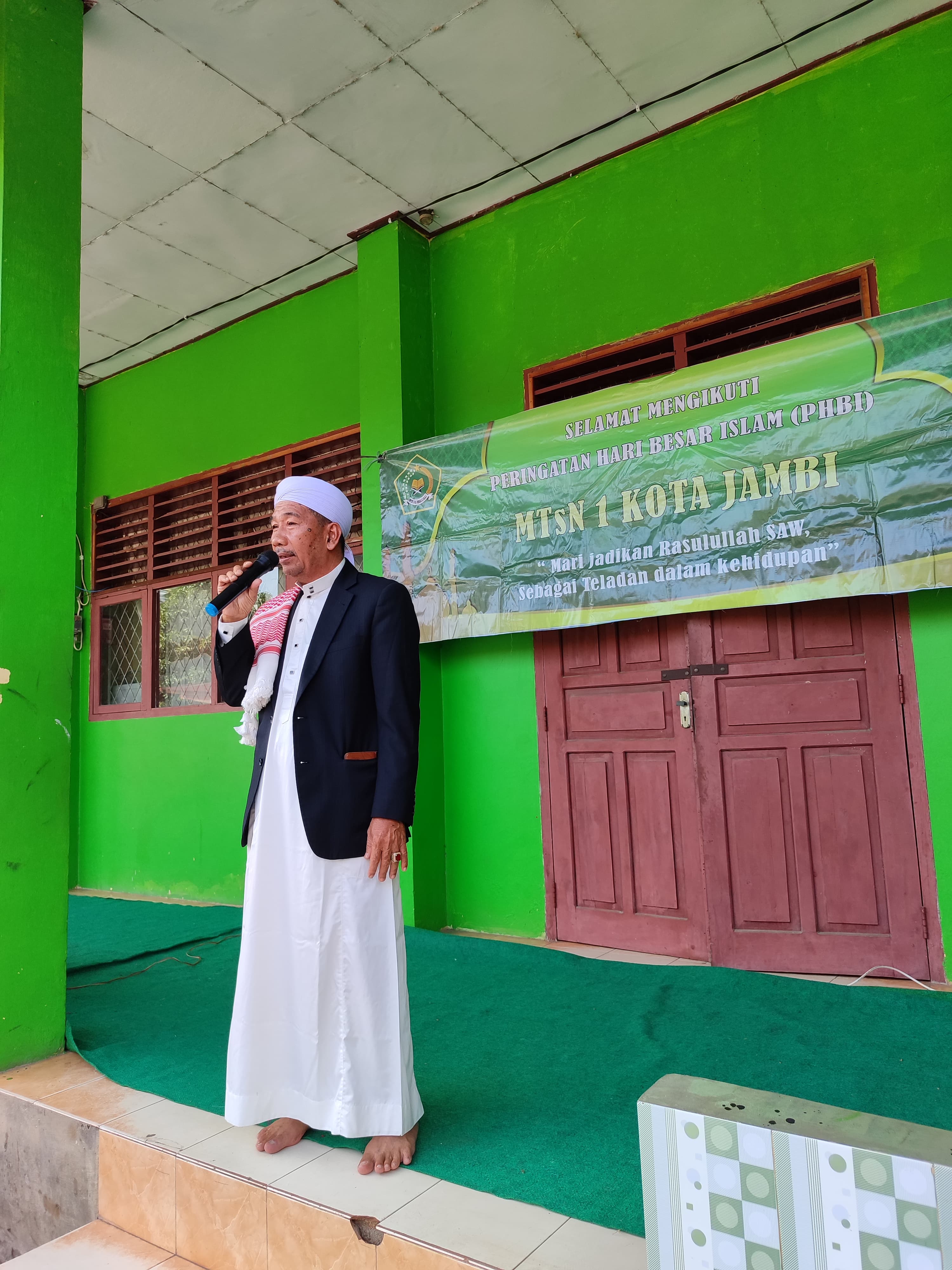 Peringatan Maulid Nabi MTs Negeri 1 Kota Jambi mengangkat tema "Jadikan Rasulullah SAW sebagai Teladan dalam Kehidupan". Dalam acara ini uraian hikmah Maulid Nabi disampaikan oleh bapak H. Darussani, S. Ag. Dalam ceramahnya bapak Darussani memberikan memotivasi kepada siswa agar selalu meneladani Rasul dengan cara meniru sikap prilaku dan budi pekerti baik Rasulullah.
