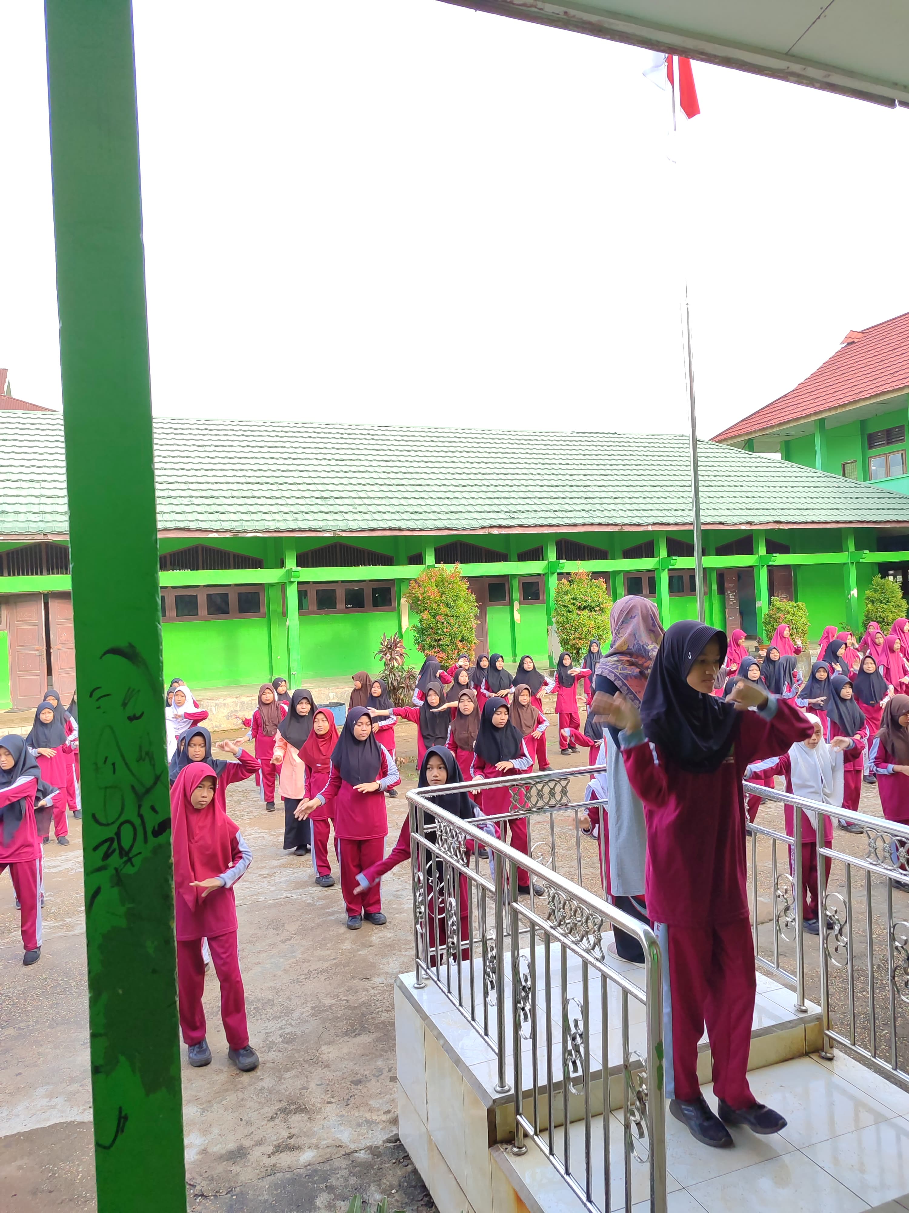 Siswa MTs Negeri 1 Kota Jambj menggelar aktivitas senam sehat seperti biasanya setiap hari Sabtu. Dalam kegiatan senam ini semua siswa dan dewan guru serta staf karyawan MTs Negeri 1 Kota Jambi terlihat antusias mengikuti setiap gerakan demi gerakan yang diberikan instruktur senam dari anggota OSIM yang dipusatkan di halaman upacara dan lapangan basket.