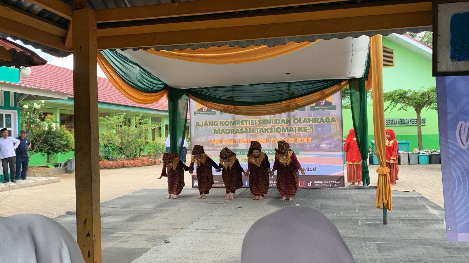Sungguh menjadi penantian menegangkan bagi peserta menunggu pengumuman lomba yang dilaksanakan Jumat, 8 November 2024 ini. Sementara lomba dilaksanakan Selasa, 5 November 2024. Pada acara AKSIOMA tersebut peserta MTs Negeri 1 Kota Jambi membawakan tarian kreasi bernama Zapin Tudung Lingkup. Peserta tari tampak selalu penuh semangat berlatih di bawah asuhan ibu Dewi Ari Kusuma yang merupakan pelatih tari Sanggar Mumbung Sebrang Kota Jambi. Sementara untuk pembimbing lomba tari ini sendiri, yakni ibu Putri Sri Rahayu, S.Pd. "Prestasi ini tidak lepas dr perjuangan siswa yg semangat berlatih, serta dukungan dan doa dari warga madrasah terutama kepala madrasah." ujar ibu Putri Sri Rahayu, S.Pd.