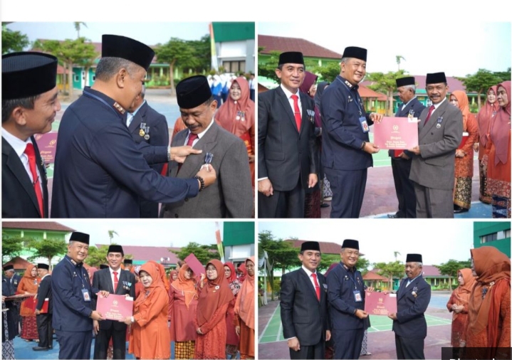 Pada upacara peringatan HAB tahun 2025 ini dilaksanakan pula penyematan tanda dan penghargaan Satya Lencana Karya Satya kepada lebih kurang 60 guru dan karyawan kementerian agama. Tampak peserta upacara HAB mengikuti upacara dengan khitmad dan tertib yang salah satu pesertanya adalah MTs Negeri 1 Kota Jambi dengan penuh kekompakan.