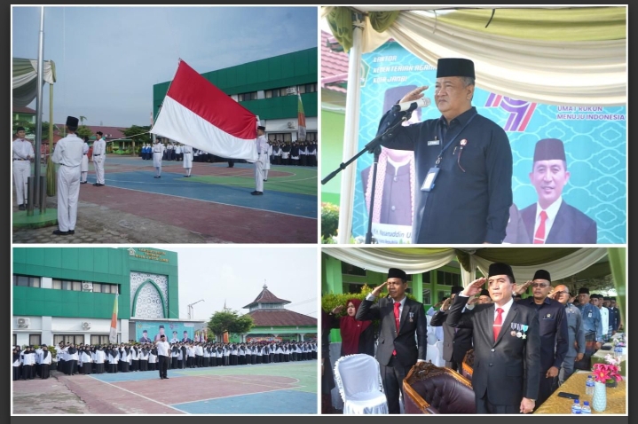 Mewakili Penjabat (Pj) Wali Kota Jambi, Sekretaris Daerah A Ridwan memimpin upacara Hari Amal Bakti (HAB) Kementerian Agama Republik Indonesia ke-79 Tahun 2025 tingkat kota Jambi diselenggarakan dilapangan MTs Negeri 2 Kota Jambi. Pada upacara peringatan HAB Kementerian Agama Ke-79 tingkat kota Jambi itu, turut dihadiri, Kepala Kantor Wilayah Kementerian Agama Kota Jambi Abd Rahman, Kabag Kesra Kamal Firdaus, Camat Jambi Selatan Alfin Jalil, Kepala Baznas kota Jambi Syamsir Naim, Lurah Thehok, perwakilan MUI, perwakilan unsur Ormas Islam Kota Jambi serta para peserta Upacara HAB Ke-79 Kementerian Agama.