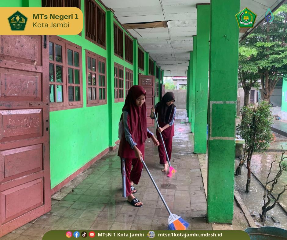 Kegiatan Gotong royong ini melibatkan semua warga MTs Negeri 1 Kota Jambi, tanpa terkecuali. Warga MTs Negeri 1 Kota Jambi sangat antusias dan bersemangat melakukan kegiatan gotong royong ini, mengingat pasca libur semester ganjil lingkungan madrasah perlu dibersihkan dan dibenahi kembali agar siswa merasa nyaman dalam beraktivitas. Kegiatan gotong royong dilaksanakan setelah senam pagi. Meski dihiasi rintik hujan, tak menyurutkan semangat siswa untuk membersihkan lingkungan madrasah.