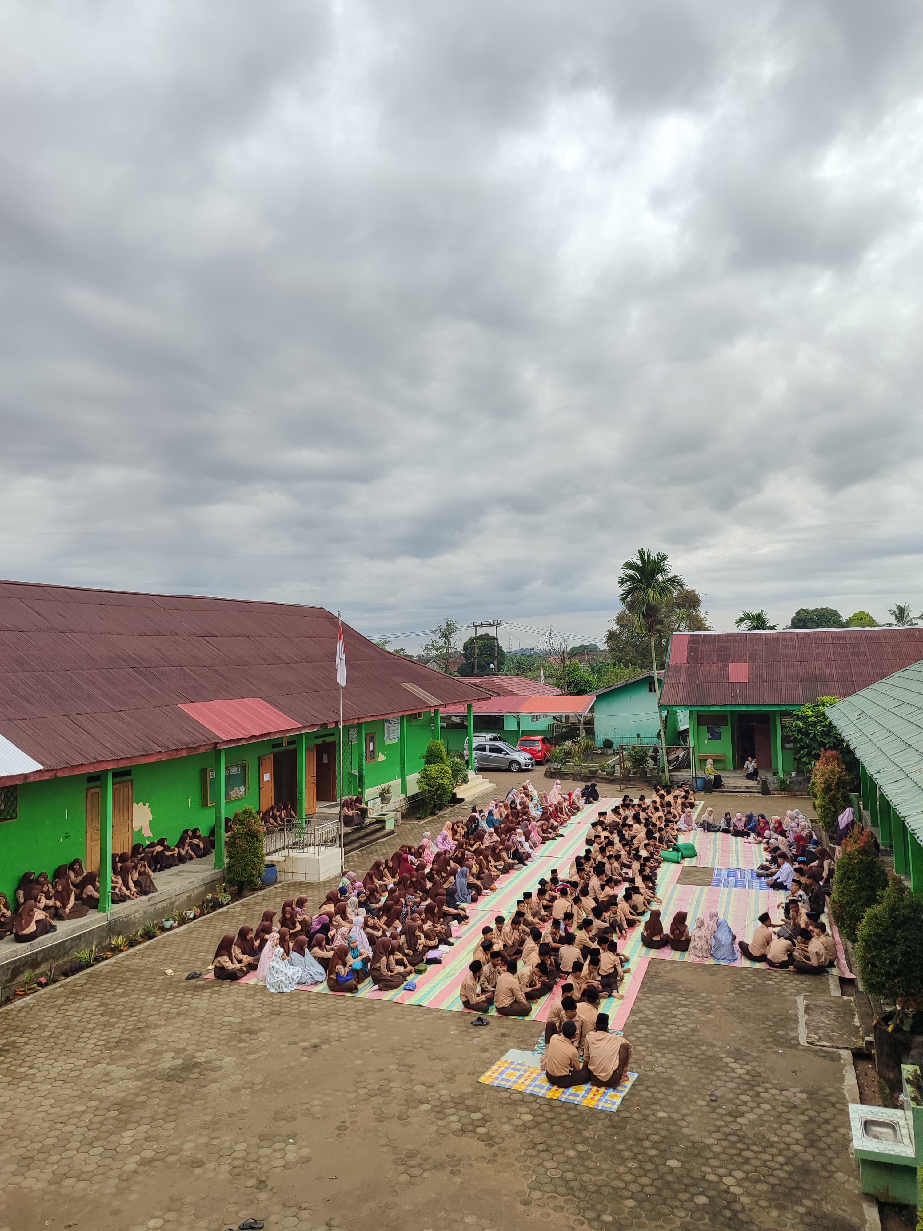 Tak hanya menyapa para siswa, juga menyampaikan pesan kepada seluruh dewan guru dan staf untuk kembali menguatkan komitmen dalam menjalankan tugas mulia sebagai pendidik. Usai sambutan acara dilanjutkan dengan penampilan tim marawis MTs Negeri 1 Kota Jambi yang membawakan beberapa lagu. Setelah itu, acara inti halal bihalal, yakni tausiyah yang disampaikan oleh bapak Dedi Purwandi, S.Pd. Dalam tausiyahnya, pak Dedi menekankan pada siswa untuk selalu bersyukur dengan apa yang telah Allah berikan setiap harinya. Siswa tampak antusias menyimak tausiyah yang disampaikan ditambah lagi dengan cuaca mendung yang mendukung sehingga siswa merasa lebih nyaman.