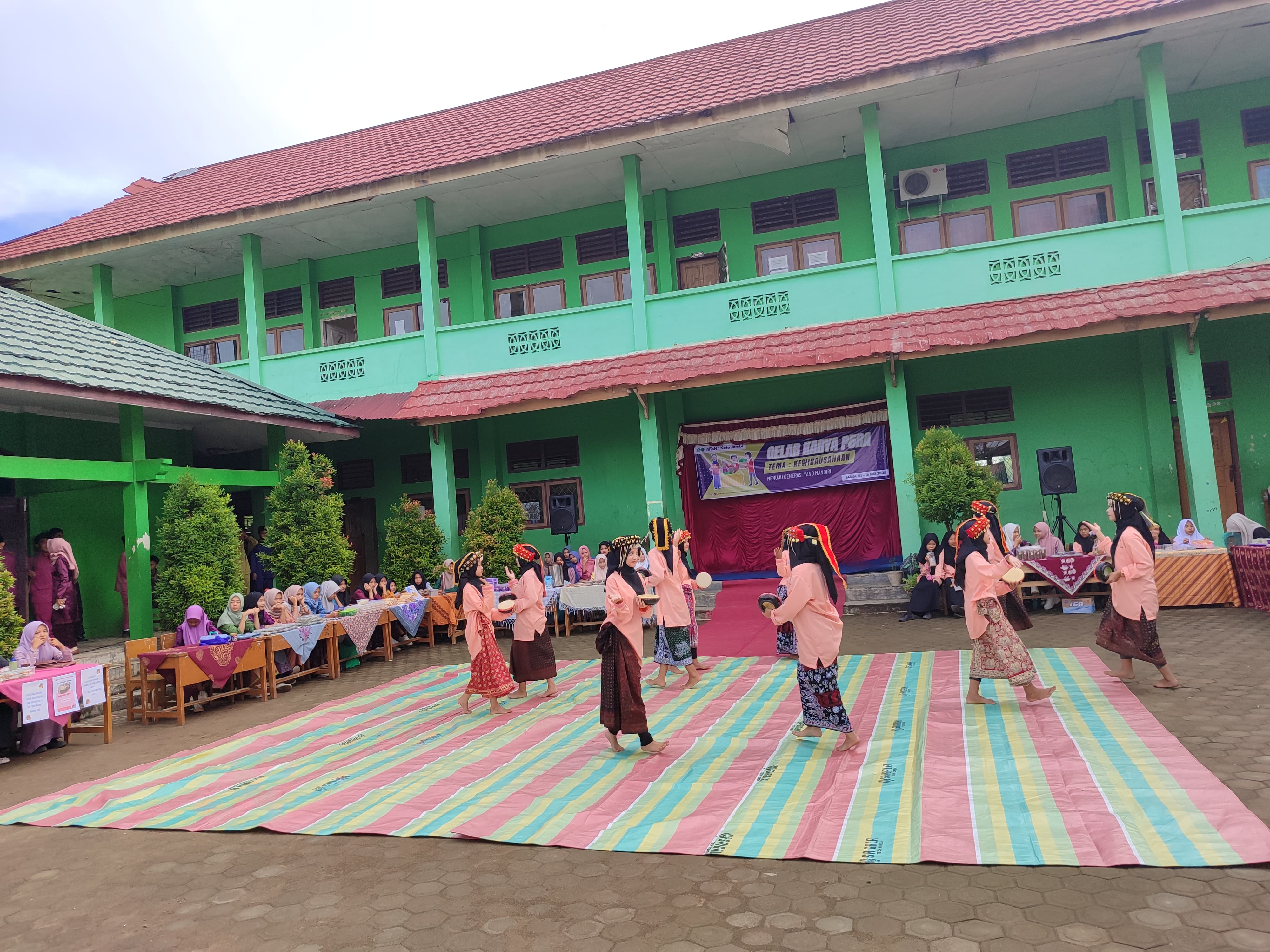 MTs Negeri 1 Kota Jambi menggelar karya Projek Penguatan Profil Pelajar Pancasila dan Rahmatan lil Alamin (P5RA) yang mengusung tema “Kewirausahaanâ€. Kegiatan gelar karya dilaksanakan di lapangan utama dan dimulai sekitar pukul 08.00 WIB.