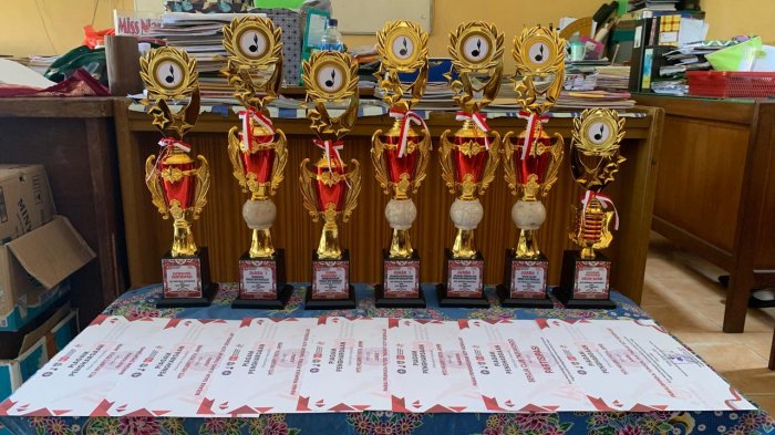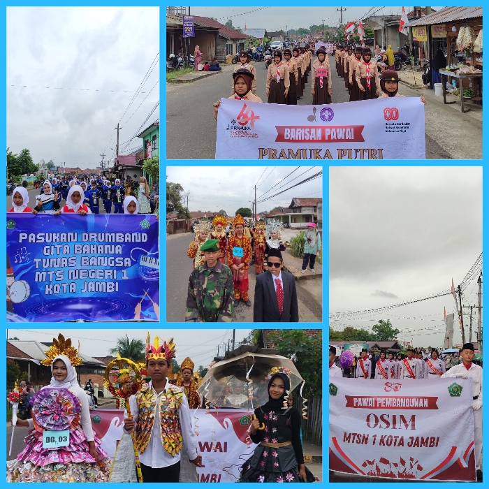 Rabu, 26 Agustus 2025. Senyum cerah menghiasi wajah-wajah di MTsN 1 Kota Jambi hari ini. Bagaimana tidak, sebanyak tujuh piala penghargaan atas beberapa cabang lomba pada pawai 64 Tahun Gerakan Pramuka dan HUT RI ke-80 tingkat Kwartir Ranting Danau Teluk berhasil dibawa pulang. Sungguh ini sebuah prestasi yang layak untuk dibanggakan.