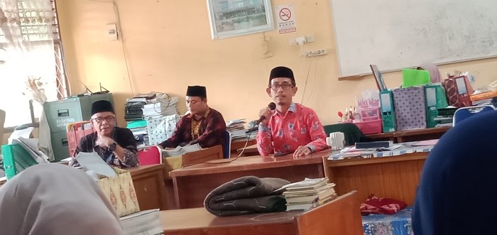 MTsNegeri 1 Kota Jambi mengadakan rapat evaluasi kinerja pada Kamis, 2 Oktober 2025, bertempat di ruang guru. Seluruh dewan guru hadir dalam kegiatan ini yang dipimpin langsung oleh Kepala Madrasah, bapak Drs. Muhammad Dahri. Kegiatan dilaksanakan pukul 13.00 sampai dengan Rapat ini bertujuan untuk menilai pelaksanaan kegiatan belajar mengajar serta meningkatkan kinerja dan kedisiplinan tenaga pendidik di lingkungan madrasah.